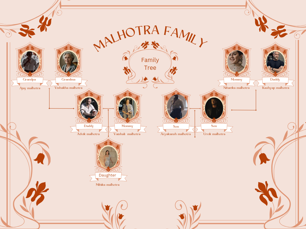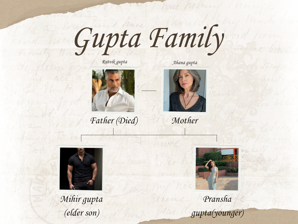 01FAMILY TREE1 May, 20251ShareThe malhotraThe guptaThe shailThe KhannaStay tuned for next chapter love yaa♥️1ShareWrite a comment ...Postvidiwrites8Show your supportHey buddies I hope you enjoy this story and this is my first book so I just want u to support me I m sure I'll not let u get bored with my stories . Thank you 😊 Support Me